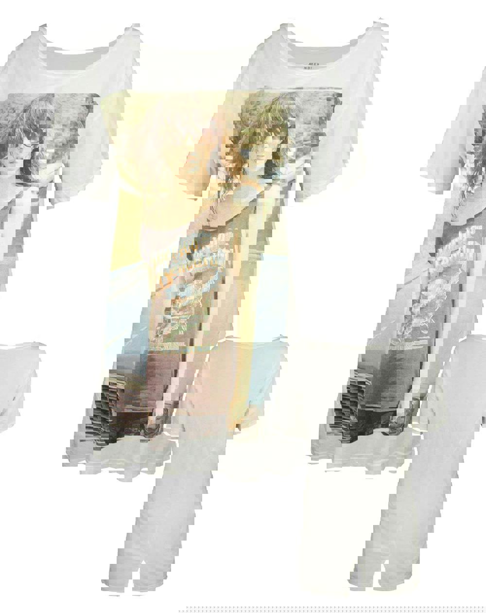 Made with 100% soft cotton and designed for a slouchy boyfriend fit, this t-shirt includes a cutting-edge split hem design at the back along with a slight distress effect feel print across the t-shirt