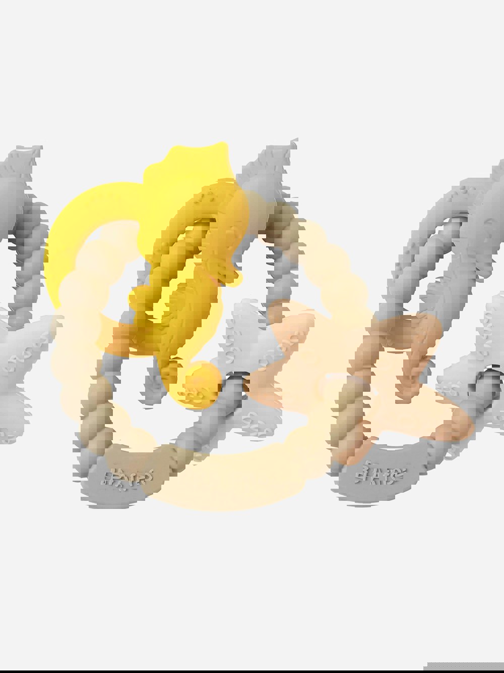 The Bloom Bambini Baby Seahorse and Starfish Teether in brown is designed to help soothe sore gums. Beautifully crafted with baby-friendly aesthetics, it features a seahorse and starfish design formed into a sphere shape for easy everyday use.
