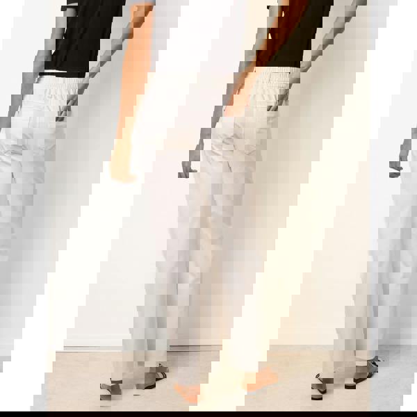 Perfectly relaxed, these ivory wide leg jeans with a comfy drawstring waist offer a laid-back look this spring summer
