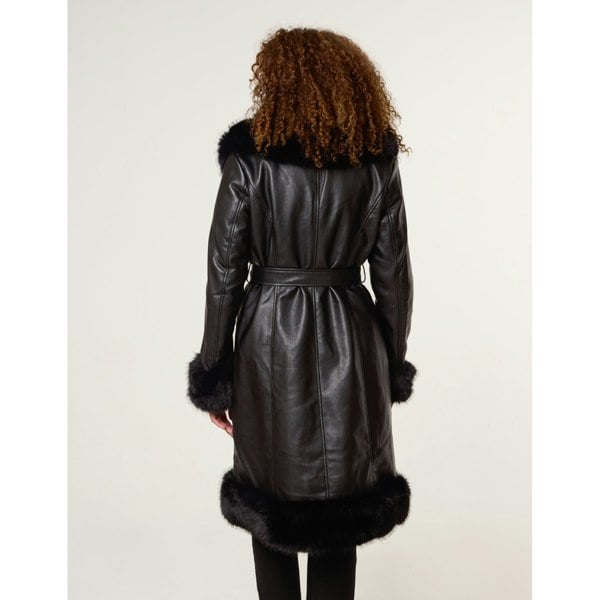 A stunning trimmed faux fur coat with a waist belt for a personalised fit