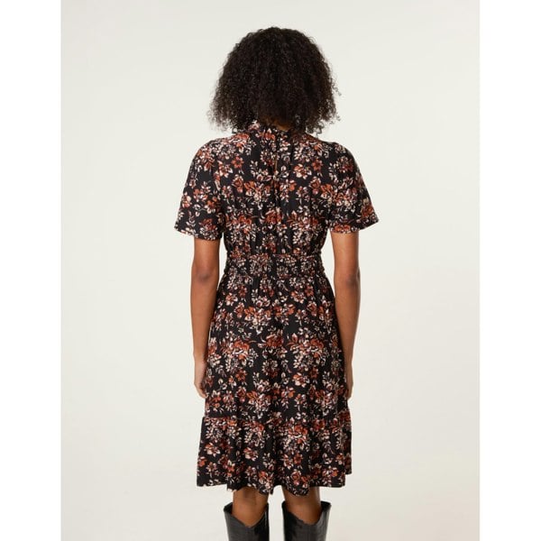 The dress that screams autumnal! With it's winter florals and autumnal colourways. Team this shirred waist midi with tights and boots