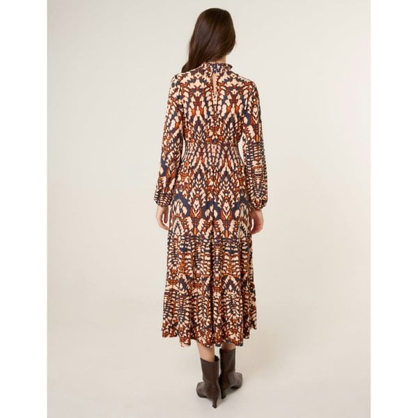 This dress adds definition to your AW wardrobe. With its shirred frill neckline and waist, it gives you a flattering definition to your outfit. Team this printed dress with leather look boots and a tan suedette jacket.