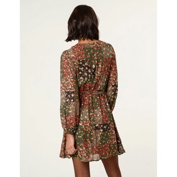A pretty autumnal option for you! Team this foil flower wrap dress with sheer rights and chunky boot heels