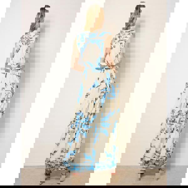 A vacation essential this linen dress is defined by an eye-catching tribal palm tree print