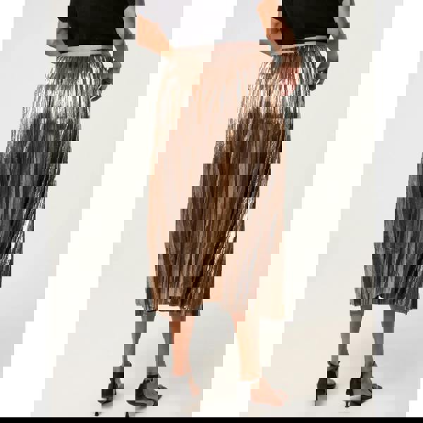 Eye-catching for all the right reason, team this metallic skirt with a slogan oversized top along with a PU jacket and boots, and a swipe of red lipstick for the ultimate chic look