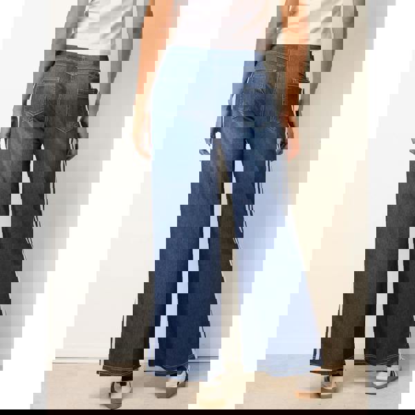The comfiest denim jeans with a elasticated waist and strip detailing down the side of these flared trousers
