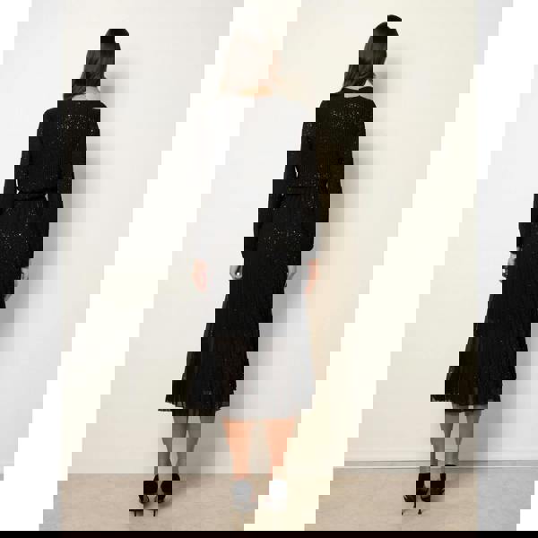 This shimmering glitter pleated dress offers a midi length that is perfect for evening or special occasions