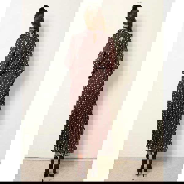 Timeless and playful, add polka dots into your AW wardrobe with this metallic pleated dress
