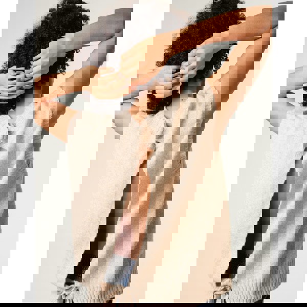 Warm up your wardrobe with this cute open back sleeveless jumper. The options are endless with this cosy knit. Team it layered over a shirt, or one it's own