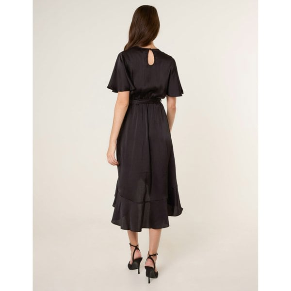 This satin midi dress will instantly elevate after dark occasions. With it's autumnal colourway to it's frill hemline