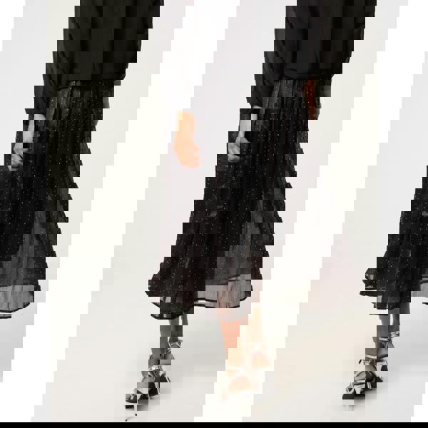 Eye-catching for all the right reason, team this stud detailed tulle skirt with a slogan oversized top along with a PU jacket and boots, and a swipe of red lipstick for the ultimate chic look