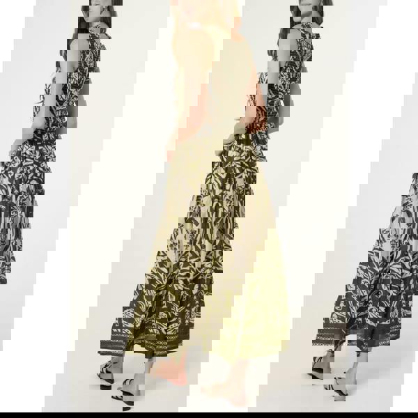 The comfy summery shirred dress features a stretchy bodice and a long A-line skirt. Team with flip flops and a suedette bag
