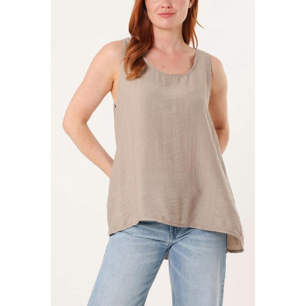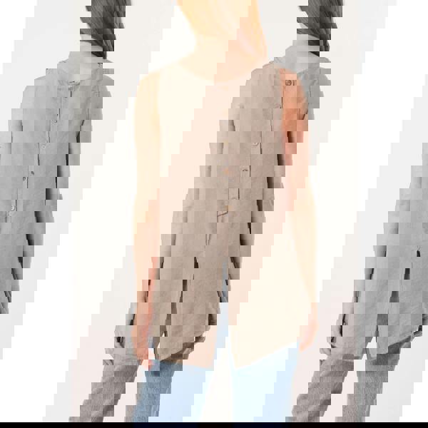 Sleeveless lightweight top with button details down the back. Pair with jeans