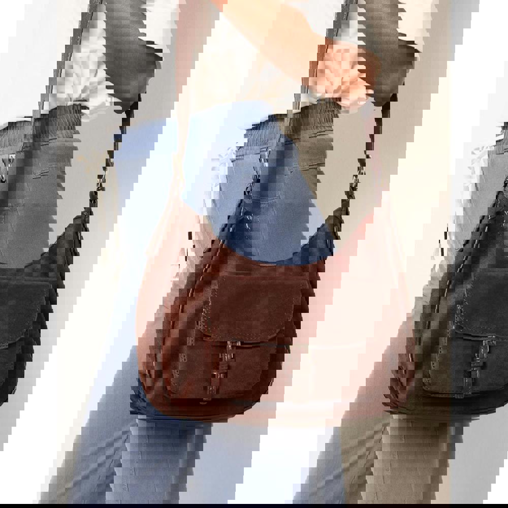 Finished in suedette, this shoulder bag is completed with an adjustable strap so you can tailor the fit to suit how you like to carry it. The one size design keeps styling simple, whether you are heading into town or keeping things light for casual outings.