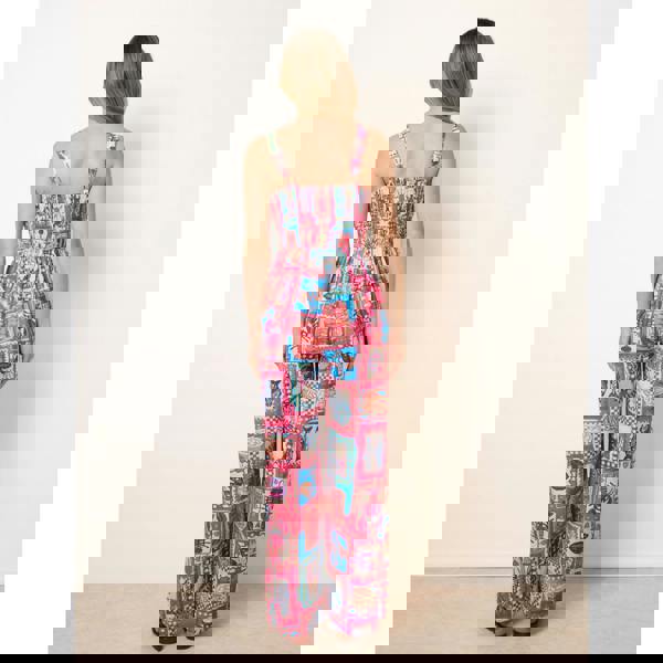 Bring pattern into warm-weather wardrobes with the Blue Vanilla Tie Front Jumpsuit in Postcard Print. Cut with a V neck and a sleeveless shape, it offers an easy, one-piece option for summertime dressing. The tie-front detail adds definition at the waist, while the colourful postcard print keeps the look bold and playful.