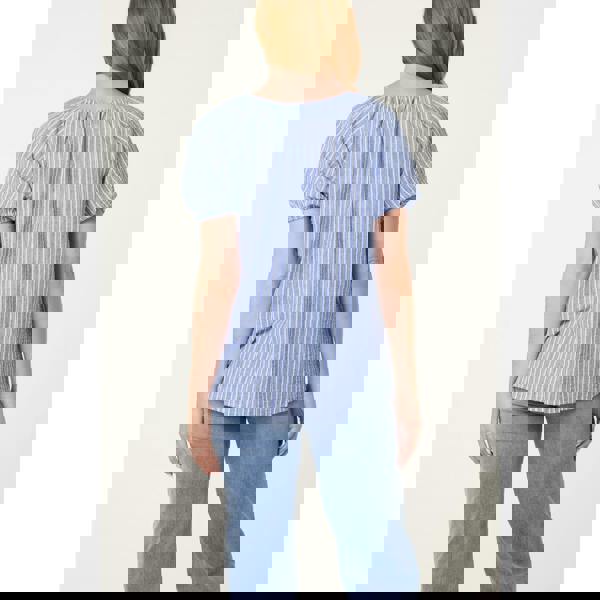 Every spring summer wardrobe needs a classic pinstripe. This classic blouse is a easy to wear day to day. Team them with our matching trousers and flip flops day to day or while away on holiday, and know you'll feel and look your best