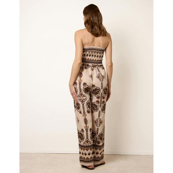Pack a statement piece for warm-weather plans with the Blue Vanilla Tribal Print Jumpsuit. Cut in a light material with a bold tribal print, it brings an easy, all-in-one look to holiday wardrobes. The Bardot neckline creates a bandeau-style finish, while the sleeveless shape keeps the silhouette clean and simple.