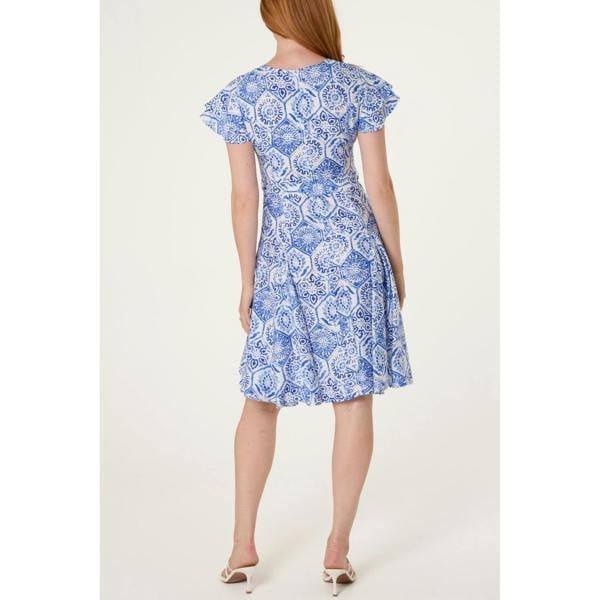 Bring pattern into your warm-weather wardrobe with the Blue Vanilla V Neck Godet Dress. Finished in a paisley design, it offers a polished look that suits summertime workwear and smarter daytime plans. A V neck adds a clean, open neckline, while the godet construction gives the skirt added shape and movement.