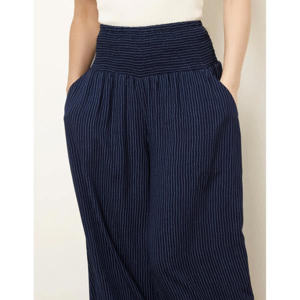 Cut for warm-weather dressing, Blue Vanilla Wide Leg Shirred Waist Wavy Trousers bring a bold look to everyday outfits. The wide-leg silhouette is paired with a shirred waistband for a defined finish, while the wavy design adds visual interest. Made from a blend of polyester, cotton and elastane, they offer an easy option for summer styling.