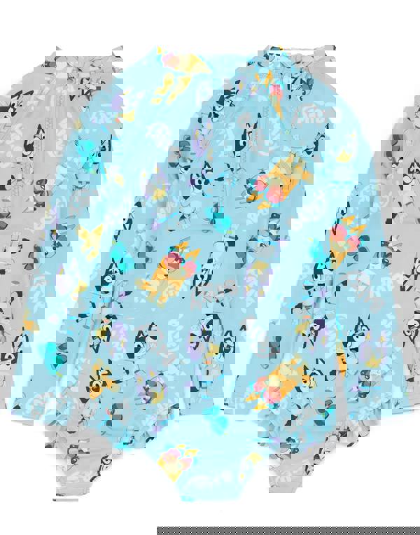 Make a splash at the pool or beach with the Bluey all-in-one swimsuit set for little girls! This adorable swimsuit comes in a pastel blue and features Bluey and his sister Bingo in an all-over print, adding a touch of fun to your little one's swimwear
