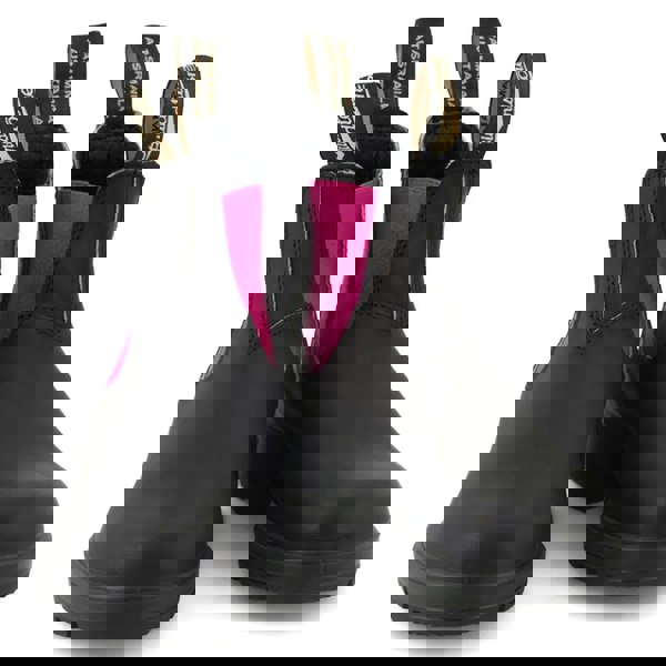* Stylish Black and Fuchsia Design: These Blundstone 2208 Chelsea boots combine classic black leather with bold fuchsia accents, offering a striking contrast that adds a modern twist to a timeless style. Perfect for both casual and semi-formal occasions, these boots bring fashion-forward flair to any outfit