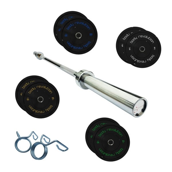 From Body Revolution, this 7ft Olympic Weightlifting Bar & Bumper Weight Plate Set brings a focused, heavy-duty set-up to strength training at home or in a dedicated fitness space. The solid chrome steel bar is built for demanding sessions, with a stated 250KG weight capacity to support progressive loading across compound lifts.