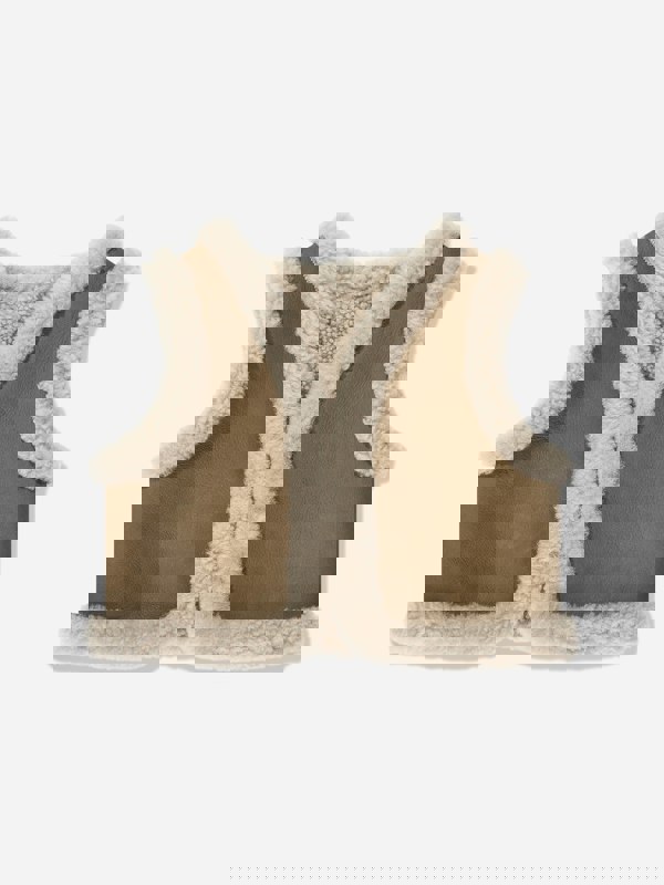 Bonpoint brings a refined look to babywear with the Barra gilet in brown. This unisex vest has a sleeveless cut and a leather and shearling construction, creating a distinctive textured finish. A Bonpoint cherry tag adds a recognisable brand detail, keeping the design clean and considered.