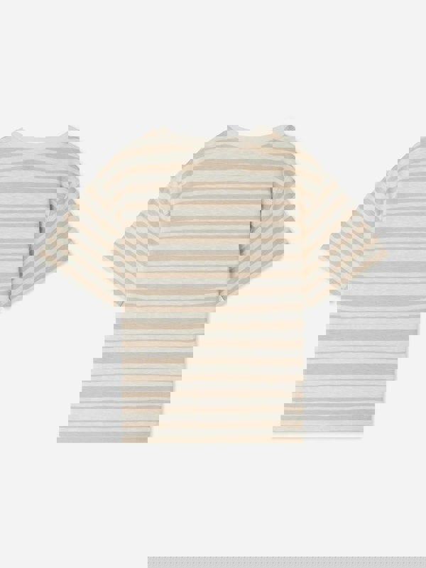 Bonpoint Boys Striped Eidan T-Shirt in beige with an ivory stripe. A simple striped design for SS2025, finished in a clean, understated colour pairing.