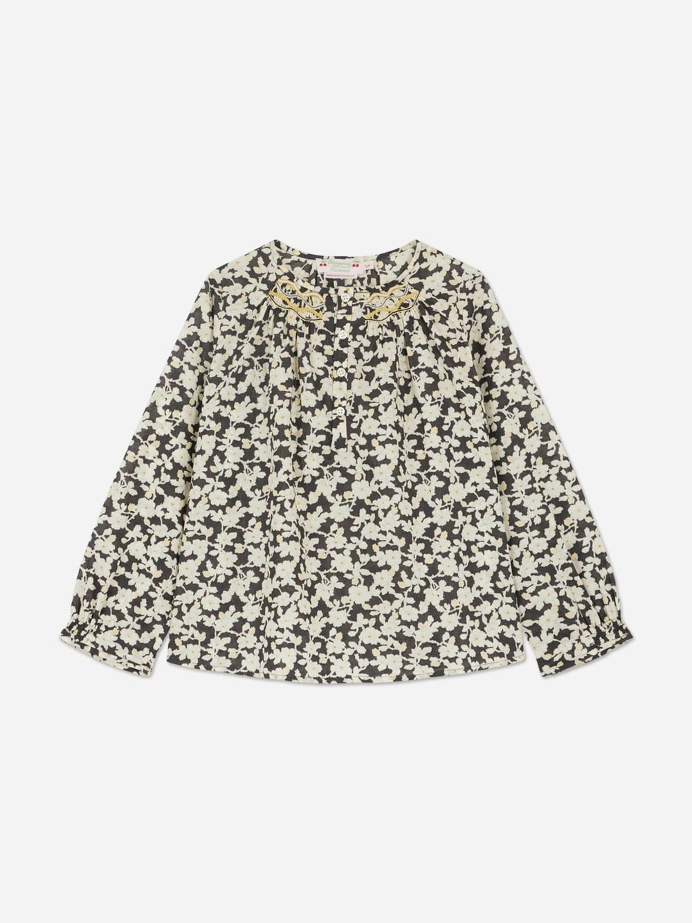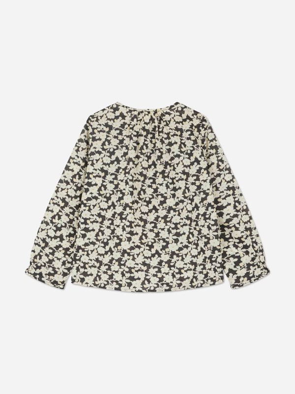 Bonpoint girls floral blouse in black for AW2025. The blouse has a floral motif across the design.
