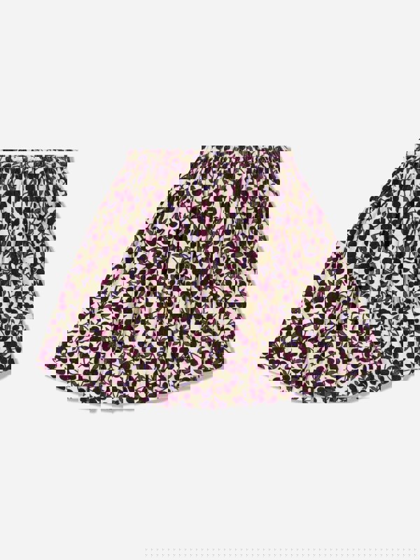 Bonpoint brings French couture into everyday wear with the Suzon skirt. This girls’ skirt comes in multicolour with a plum pattern, finished with an A-line hem for a clean, structured silhouette. The refined velvet construction keeps the look polished while the all-over print adds a distinctive finish.