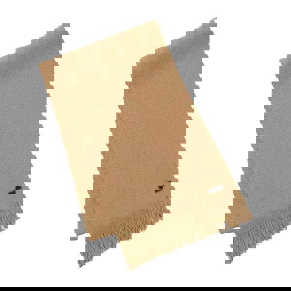 The BOSS Albas Logo Virgin Wool Scarf in beige is a knitted scarf designed for everyday wear. Made from 100% virgin wool, it offers a soft feel, making it a comfortable choice for layering through the day.