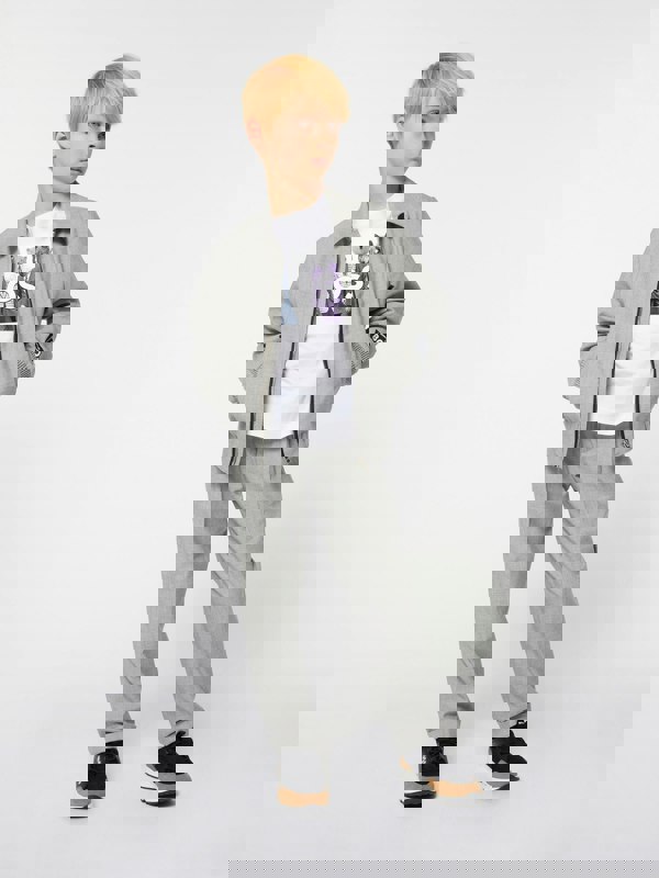 This boys suit jacket from German label BOSS comes in grey with a clean, contemporary look. It has a collar and a front zip fastening, finished with welt pockets and ribbed detailing for a streamlined silhouette. A refined lining completes the inside, alongside stitched labels for a branded finish.