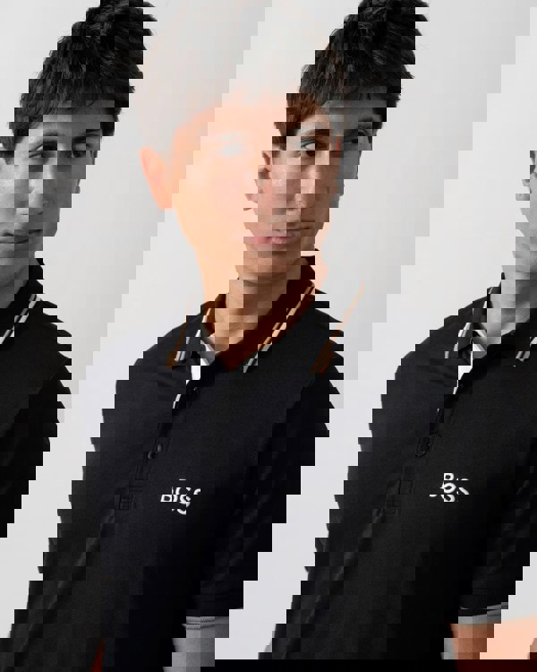 BOSS Green Paddy Pro Mens Cotton Blend Polo Shirt With Contrast Logos in Black 009