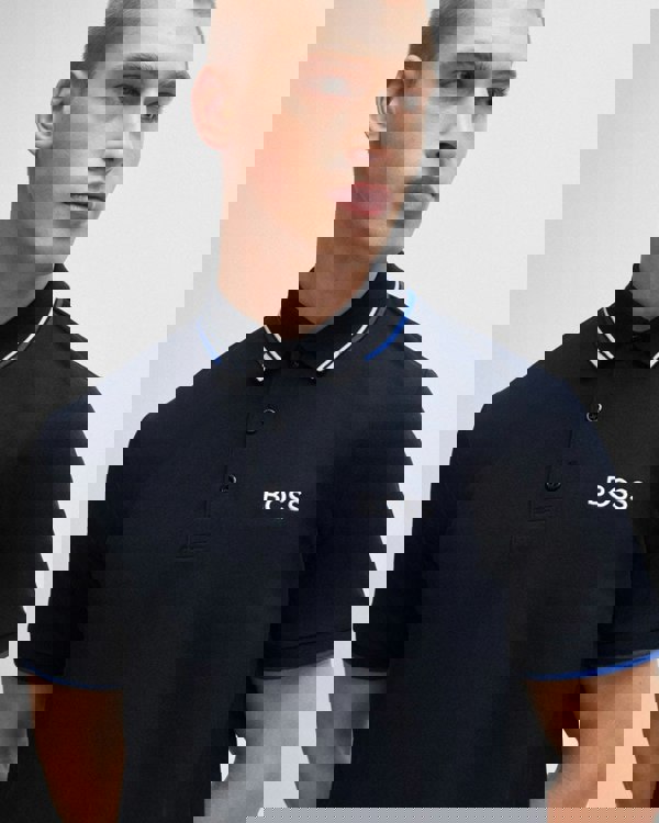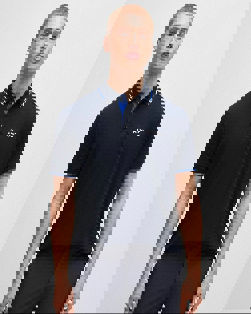BOSS Green Paddy Pro Mens Cotton Blend Polo Shirt With Contrast Logos NOS in Dark Blue 402