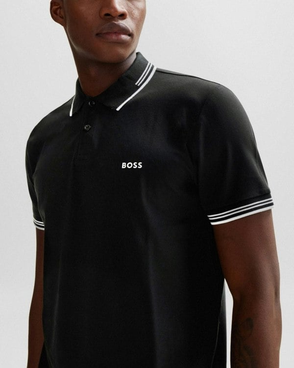 BOSS Green Paul Mens Short Sleeve Polo Shirt With Contrast Tipping NOS in Black 001