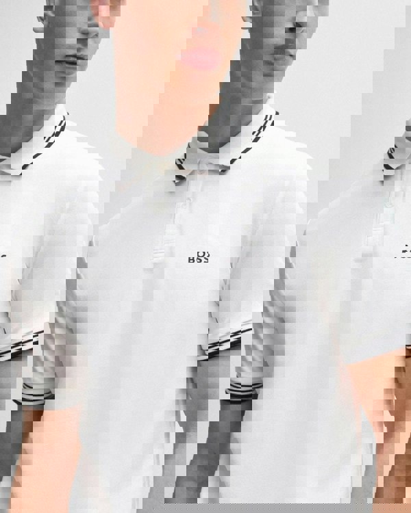 BOSS Green Paul Mens Short Sleeve Polo Shirt With Contrast Tipping NOS in White 100