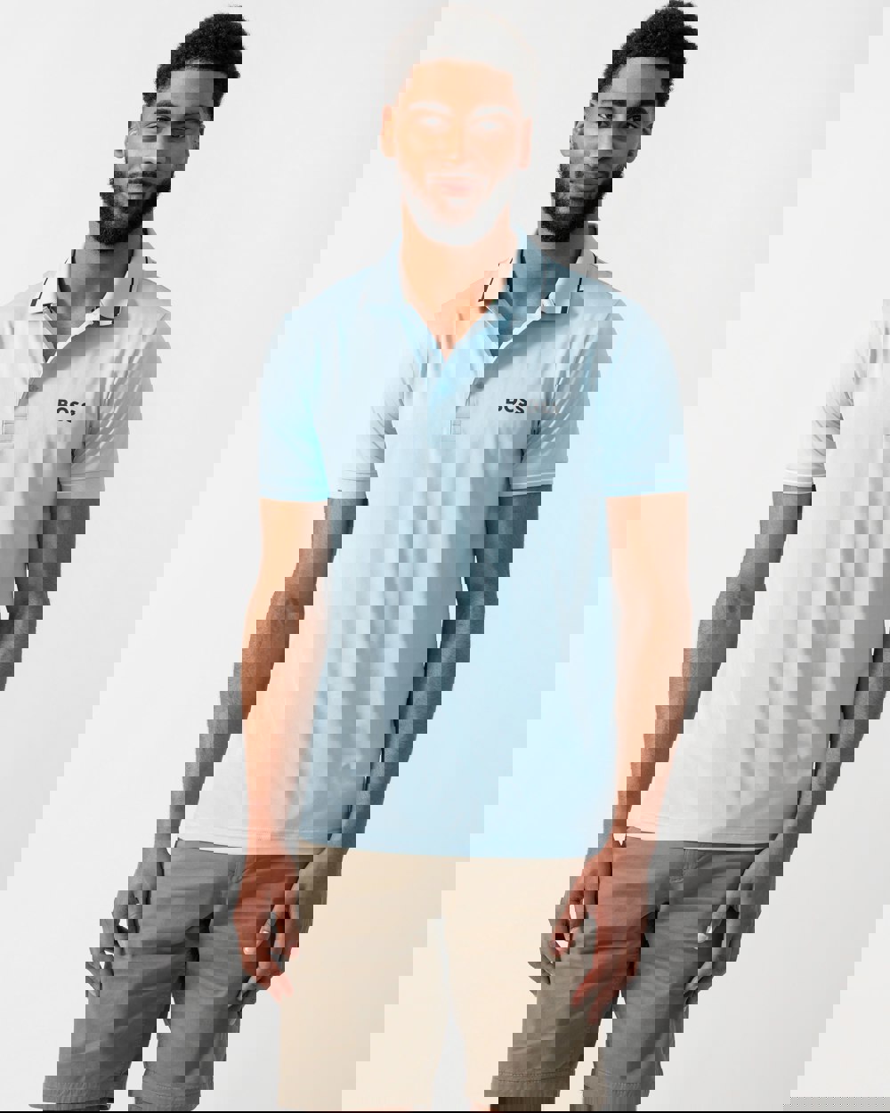 BOSS Green Paul Pro Mens Tipped Polo Shirt in Light/Pastel Blue 455