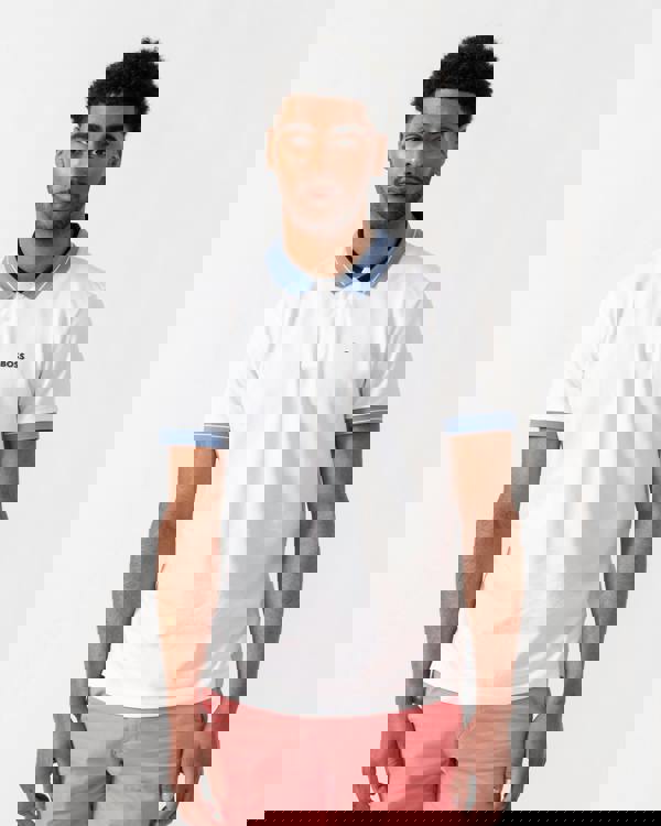 Structured and striped trims bring a crisp finish to the BOSS Green PL_Member polo shirt, a short-sleeved style for men in white. Cut to a regular fit with a standard length, it’s an easy choice for casual wear, whether worn on its own or layered under a lightweight jacket.