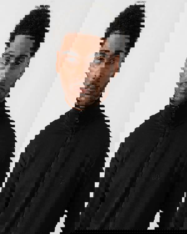 A clean, sporty layer, the BOSS Green Skaz men’s full zip funnel neck sweatshirt comes in black 001 with a streamlined finish. A full-length black zip runs through the front, while the funnel neck adds a neat, structured look when worn open or fastened. Two side pockets keep the profile practical for everyday wear.