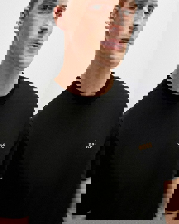 BOSS Green Tee Mens Stretch Cotton T-Shirt with Contrast Logo NOS in Black 002