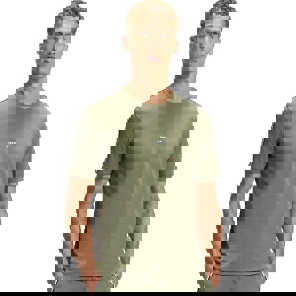 The BOSS Lightweight Unique T-Shirt in Green offers a regular fit crafted from ultra-lightweight cotton stretch jersey, ensuring superior comfort. It features a classic crew neck and short sleeves, highlighted by contrasting woven BOSS Three Stripes detailing on the shoulders. A printed BOSS logo on the chest adds a refined touch of branding.
