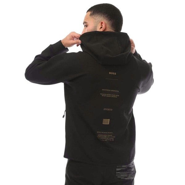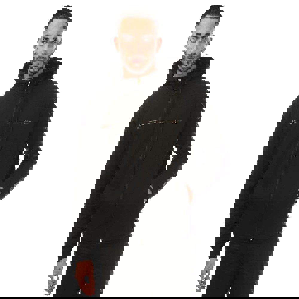 This full zip hoodie comes in black with a printed logo and text artwork. It has a hooded neckline and long sleeves, finished with self-fabric cuffs. Two side pockets with zip fastenings add practical storage, while the full-length zip closure allows easy layering.