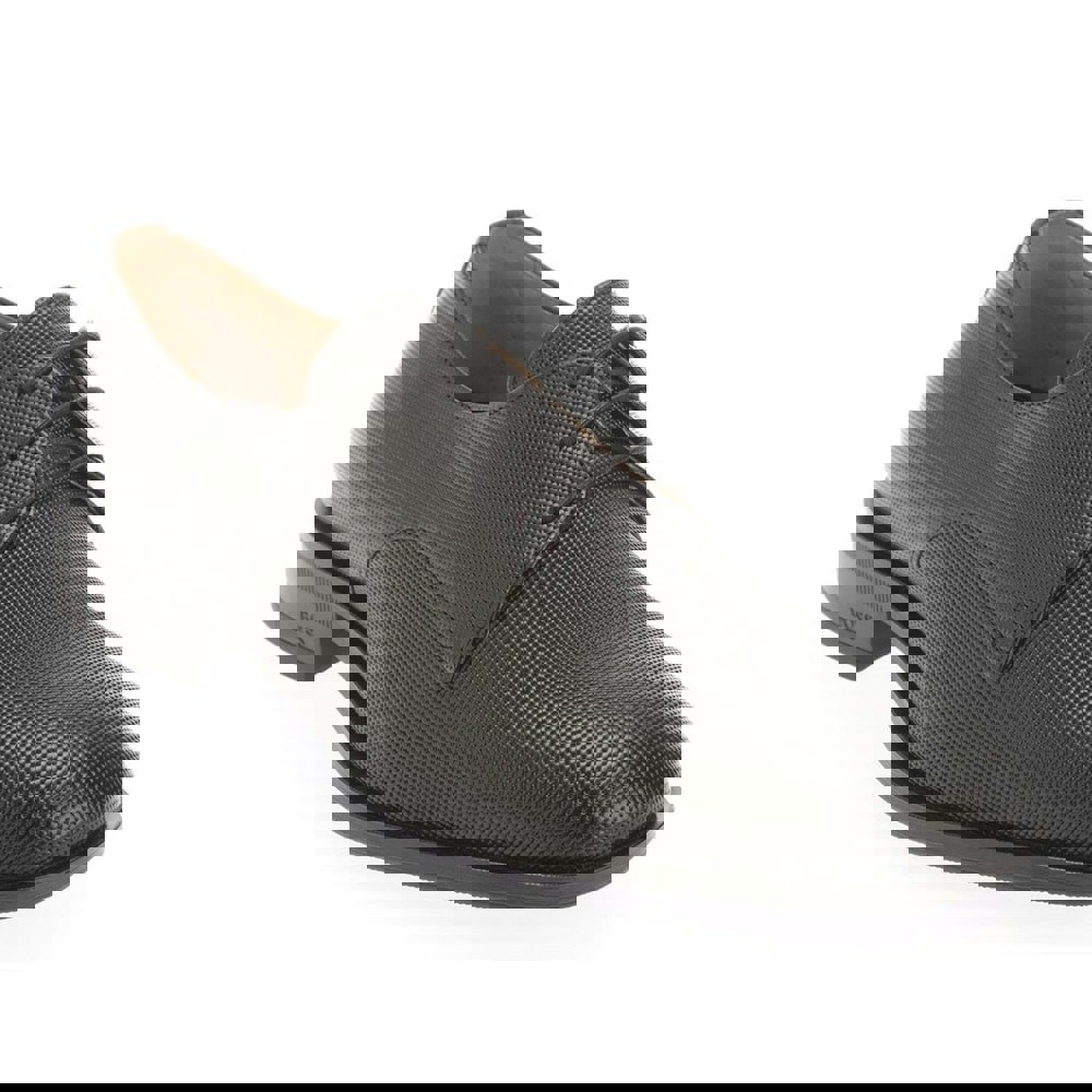 These BOSS Colby derby shoes are finished in black leather with a low-cut profile and a plain design. A round toe and square shape give a clean, structured look, while lace-up fastening secures the fit through three eyelets. Logo detailing completes the exterior.