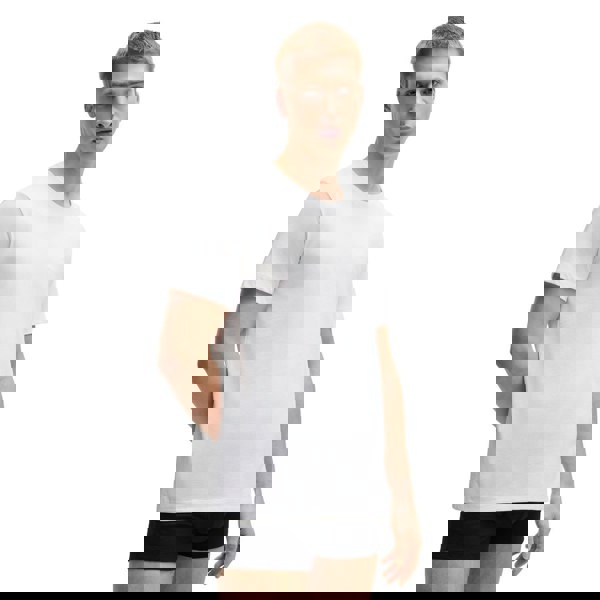 This pack of two men’s T-shirts comes in a plain white finish with embroidered logo detailing. Made from 100% cotton, each piece is cut with a comfort fit for easy everyday wear. A ribbed crew neckline and short sleeves keep the look clean and simple, making these tees a practical option for casual outfits and layering.