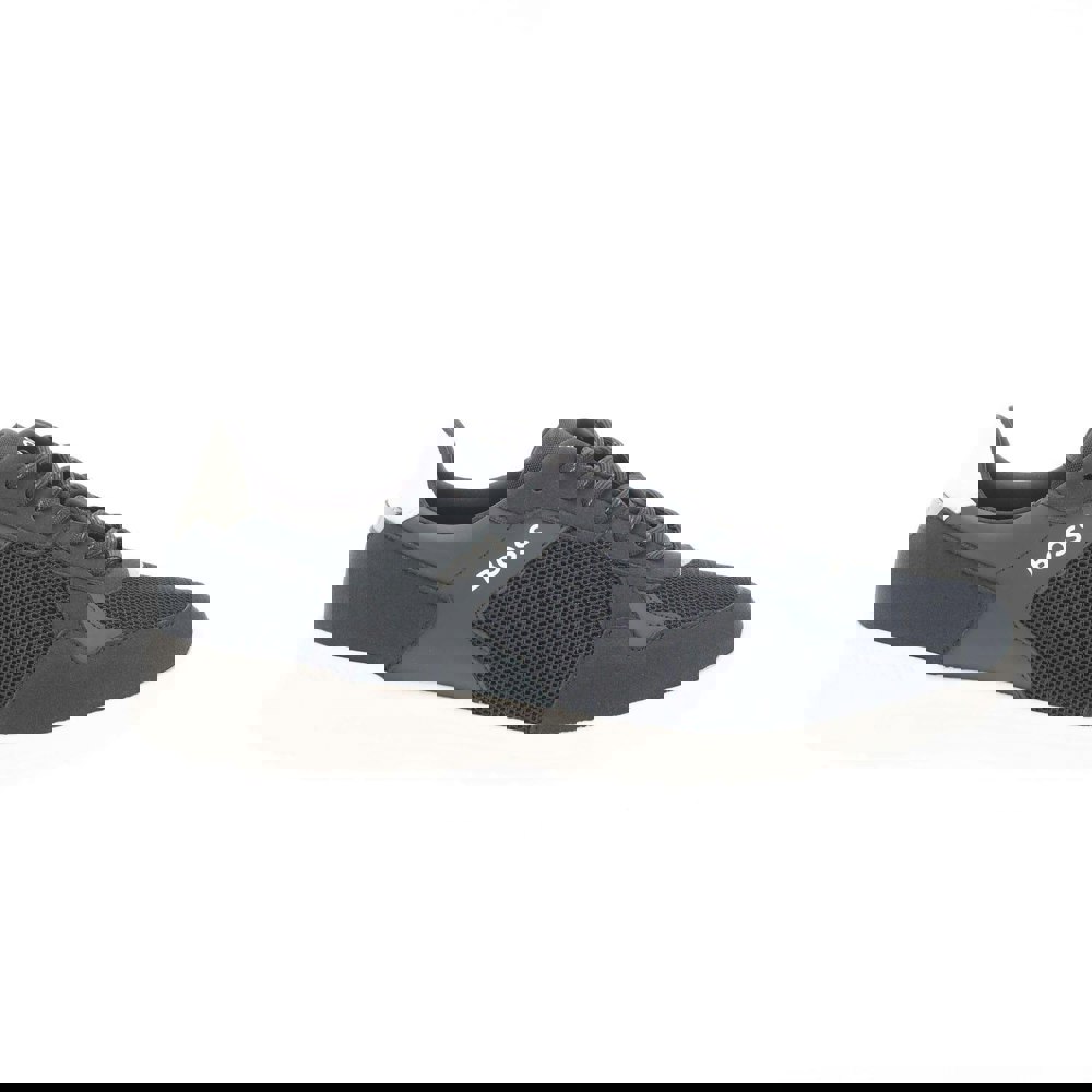 These men’s running trainers combine a mesh and suede upper with a low-cut profile. The design is finished in dark blue and white, with contrast detailing and logo branding. A lace-up fastening runs through eight eyelets, while the round toe keeps the silhouette classic.