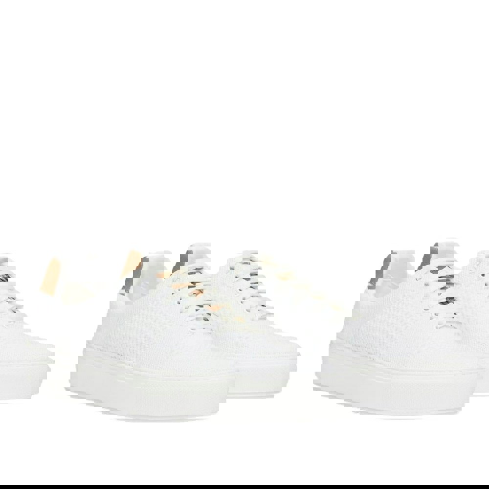 These BOSS Katie trainers are made with a leather upper and a synthetic lining, finished with a rubber outsole. The low-cut profile and round toe create a clean, understated shape, while the plain design is complemented by logo detailing.