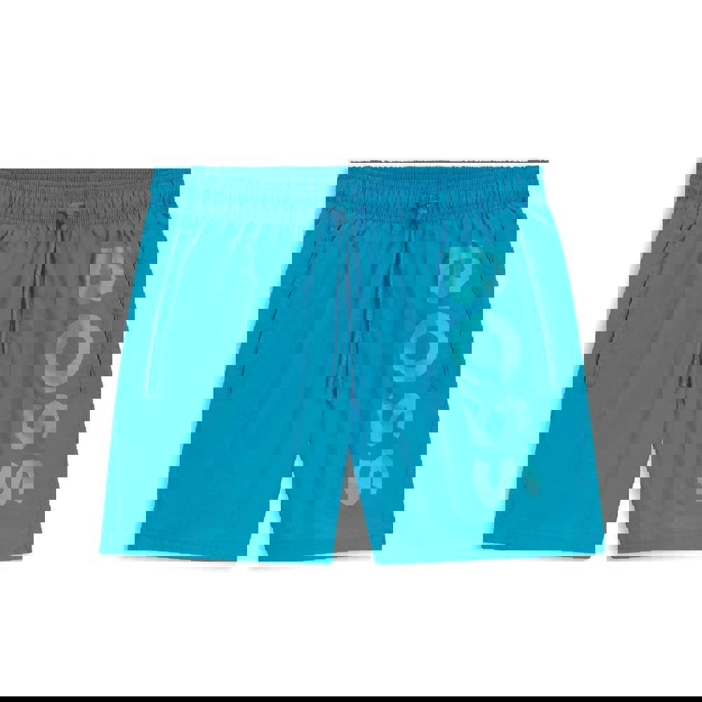 These BOSS swim shorts come in turquoise with a logo print for a clean, modern look at the pool or on holiday. Made from 100% polyamide, they have a pull-on construction with an elasticated waistband and drawcord for adjustable wear. A polyester lining adds structure, while a side pocket provides space for small essentials.