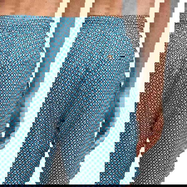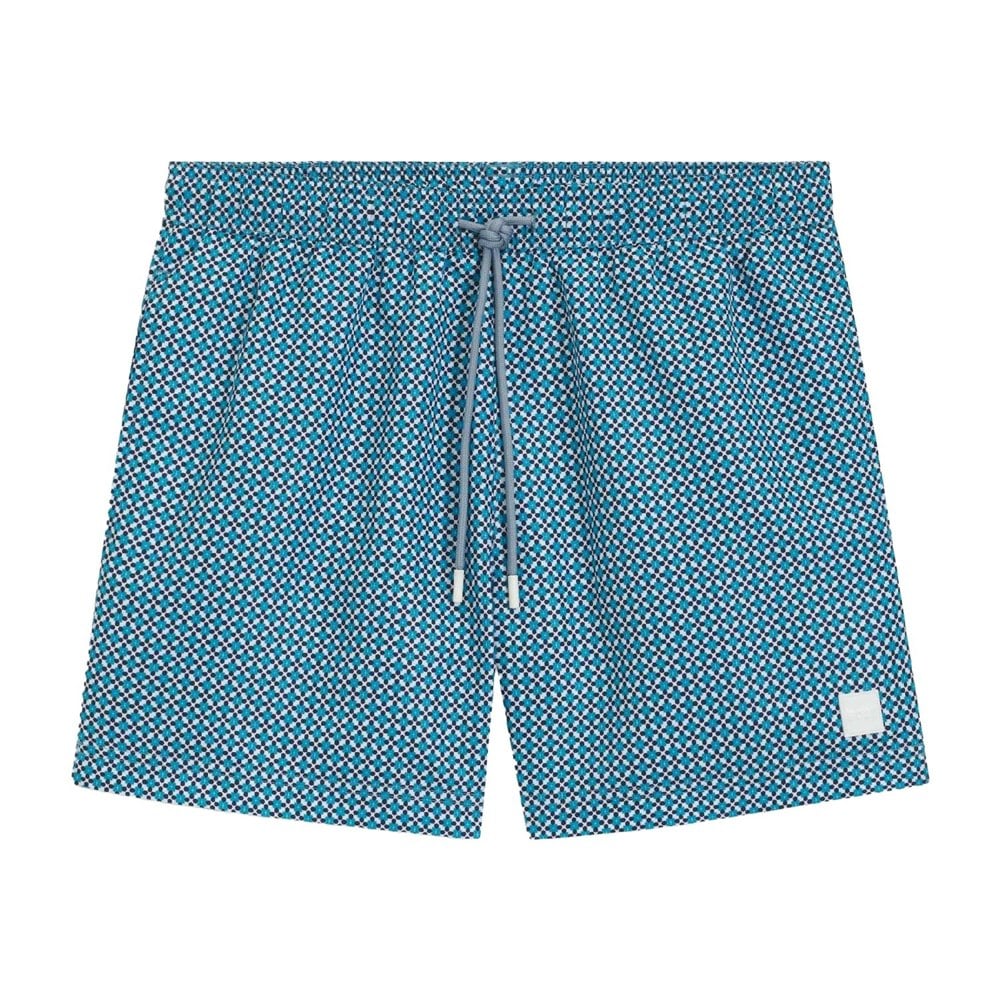 These men’s swim shorts come in blue with a logo and patterned design. Made from 100% cotton, they have a pull-on style with an elasticated waistband and drawstring for adjustment. Two side pockets add practical storage for small essentials.