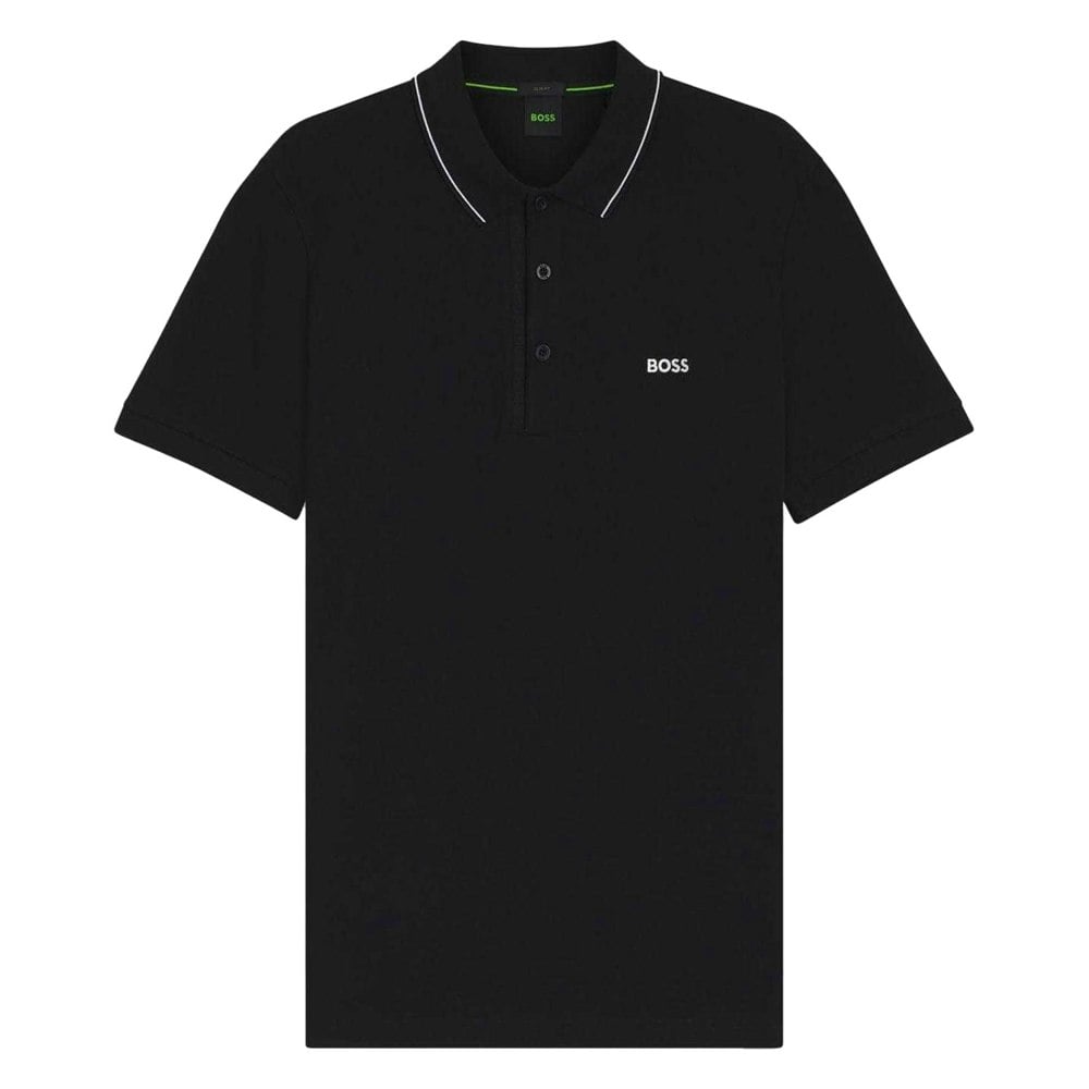 This men’s polo shirt is made from 100% cotton in a piqué fabric. It comes in black with a plain finish and a logo detail for a clean, classic look. The short-sleeved shape is paired with flat knit rib cuffs, keeping the silhouette neat and structured.