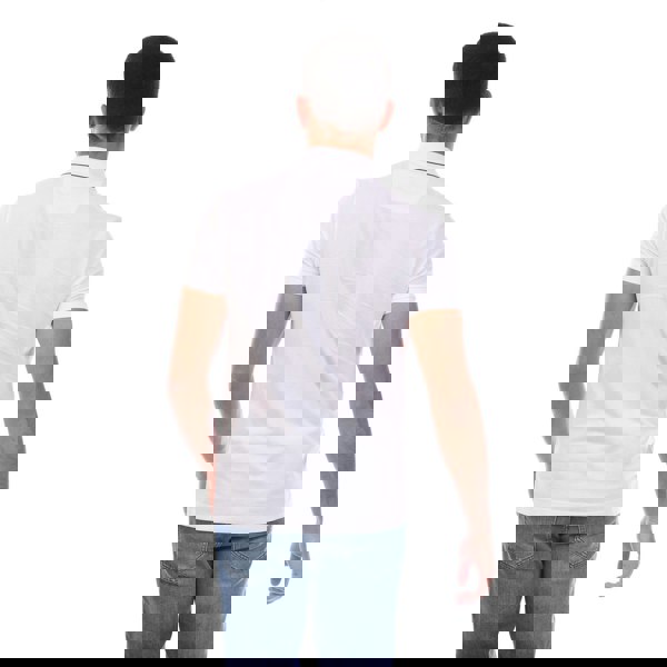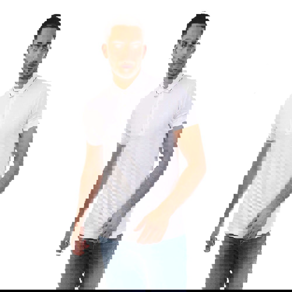 This men’s polo shirt is made from 100% cotton and comes in an off white plain finish with an embroidered logo. A flat knit collar and short sleeves keep the look classic, while the three-button placket adds a clean, traditional polo detail.